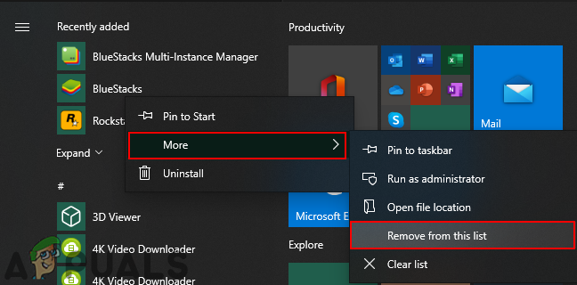 - Now right-click on any of the recently added applications, choose the More option, and then click on the Remove from the list option.