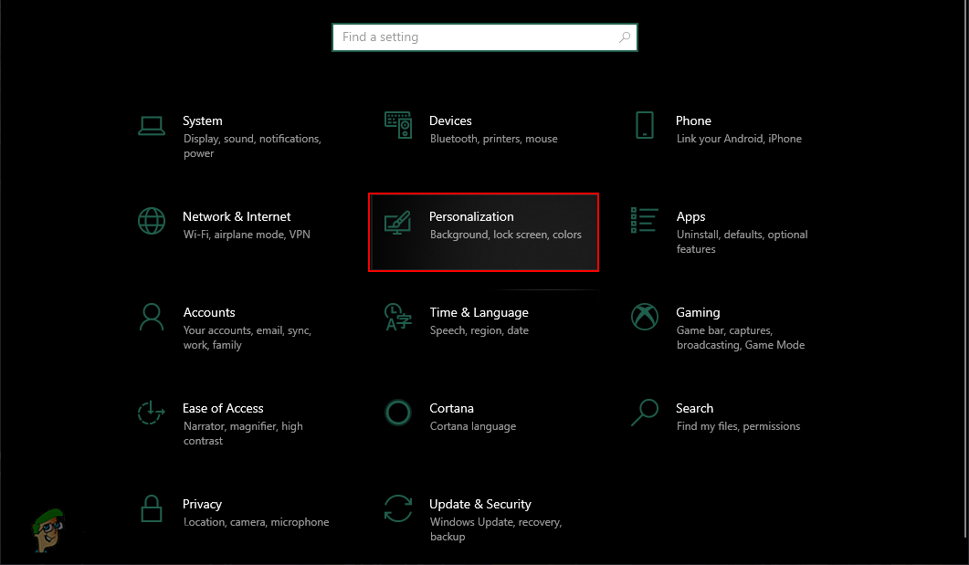 - Press the Windows + I key combination on your keyboard to open the Windows Settings app. Click on the Personalization category in the Settings window.