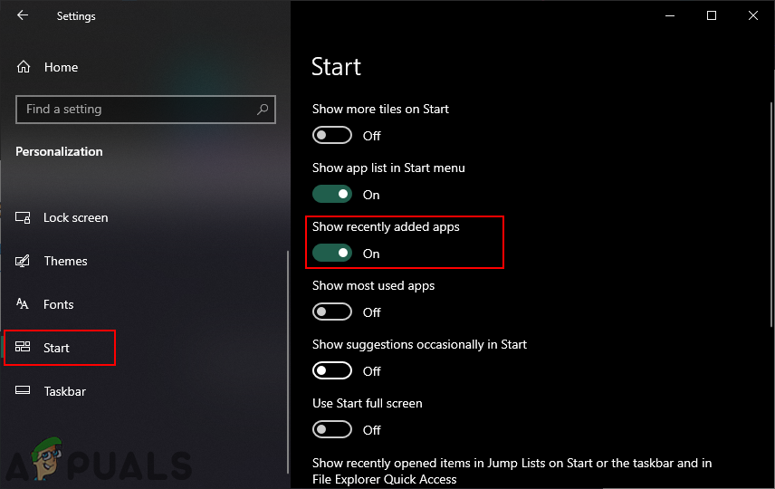 There is a setting for enabling and disabling the recently added list from your start menu. The setting can easily be found in your Windows Settings app. You can change the toggle option to Off for this setting to disable the list from the Start Menu. You can also enable it back by simply changing the toggle option back to On.
