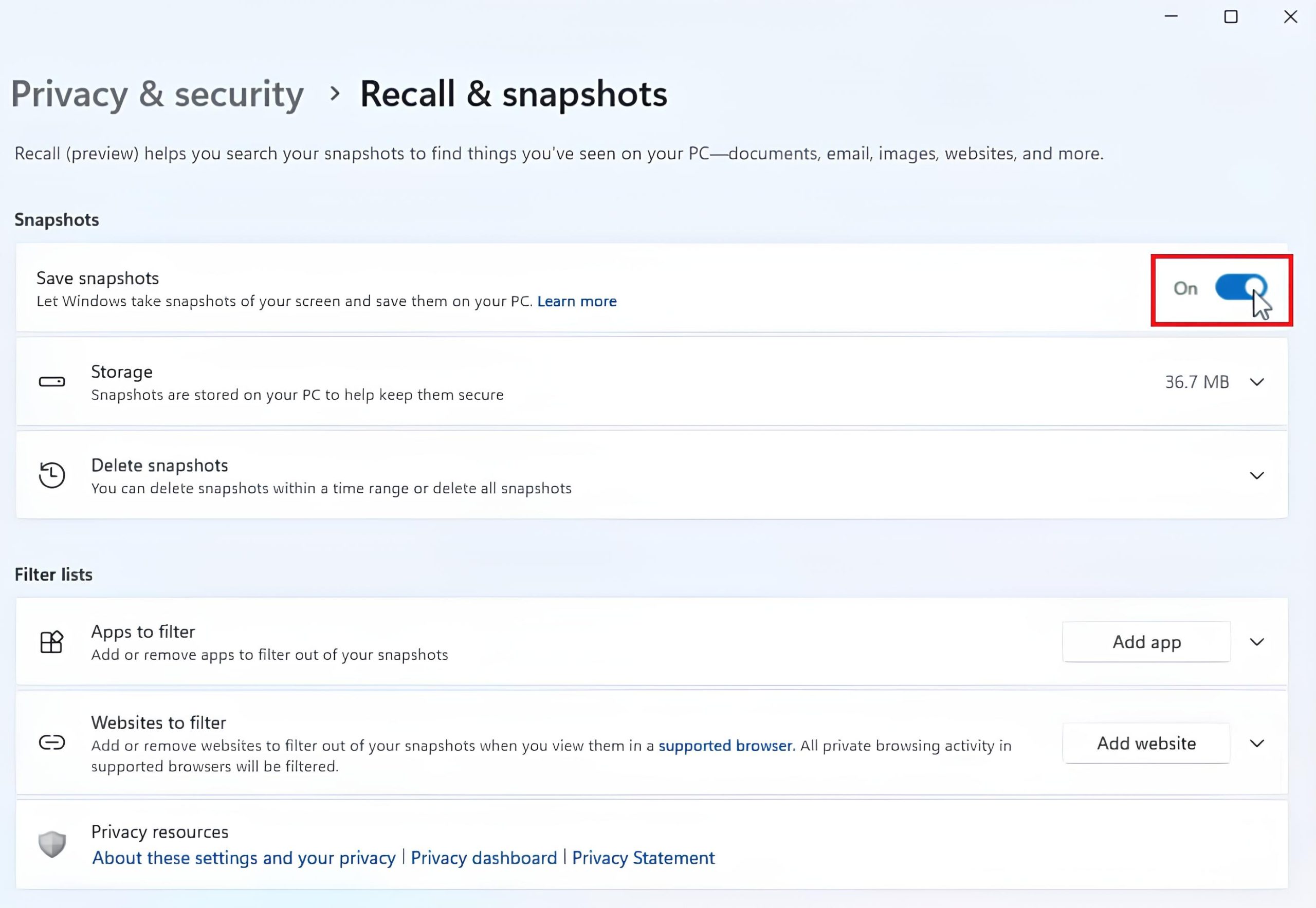 Recall also uses background resources, which can slow down your PC especially on devices with limited storage or processing power. If not disabled, these snapshots can accumulate over time, occupying disk space and leaving a trail of your digital activity.