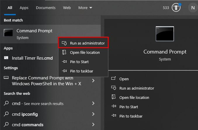 - Launch the Command Prompt as an administrator.