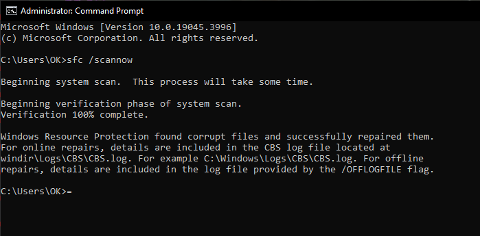 - After the scan is complete, restart your computer to see if the issue is resolved.