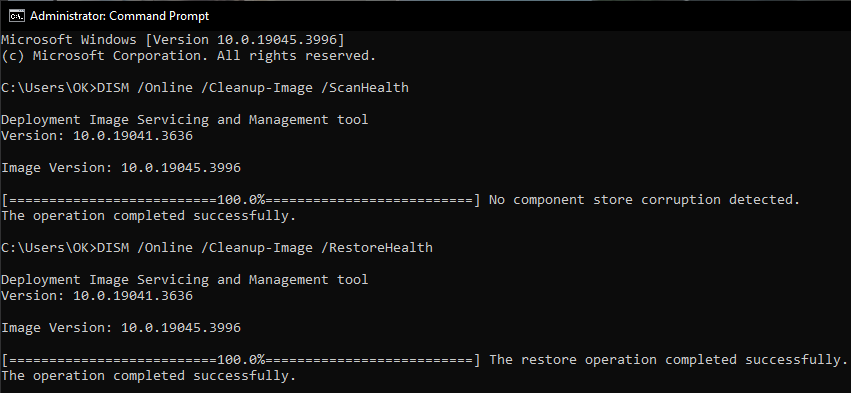 DISM /Online /Cleanup-Image /ScanHealth