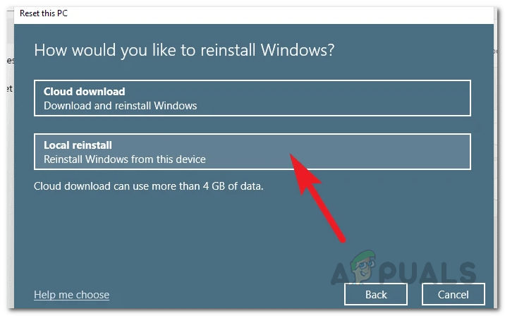 Choosing What to Keep - On the next prompt, you will be asked how Windows is to be reinstalled. You can either choose Local reinstall which will use the local files on your system to reinstall Windows or Cloud download that will download the required files from Microsoft’s servers. Choosing the latter will require a stable internet connection so make sure you are covered there. If you are facing problems on your system, it is recommended to use the Cloud download option as it will download new files and thus, Windows doesn’t have to use the local files in case they are corrupted or damaged.