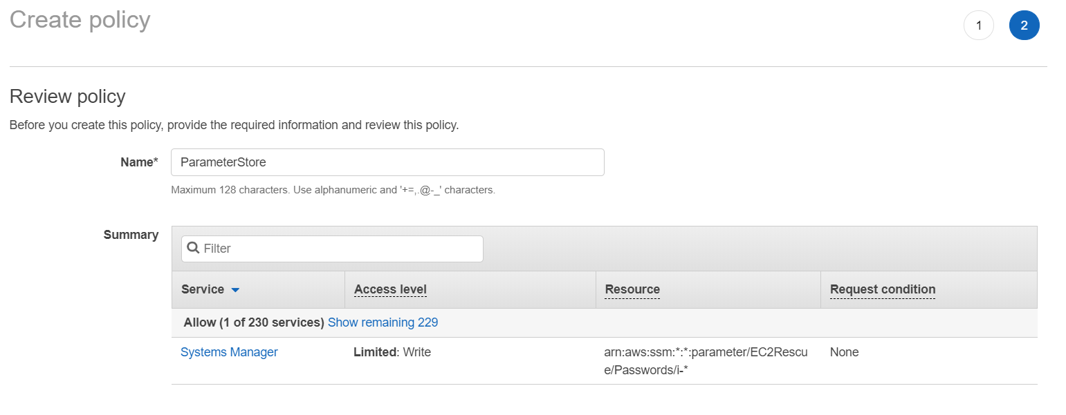"arn:aws:ssm:*:*:parameter/EC2Rescue/Passwords/i-*"