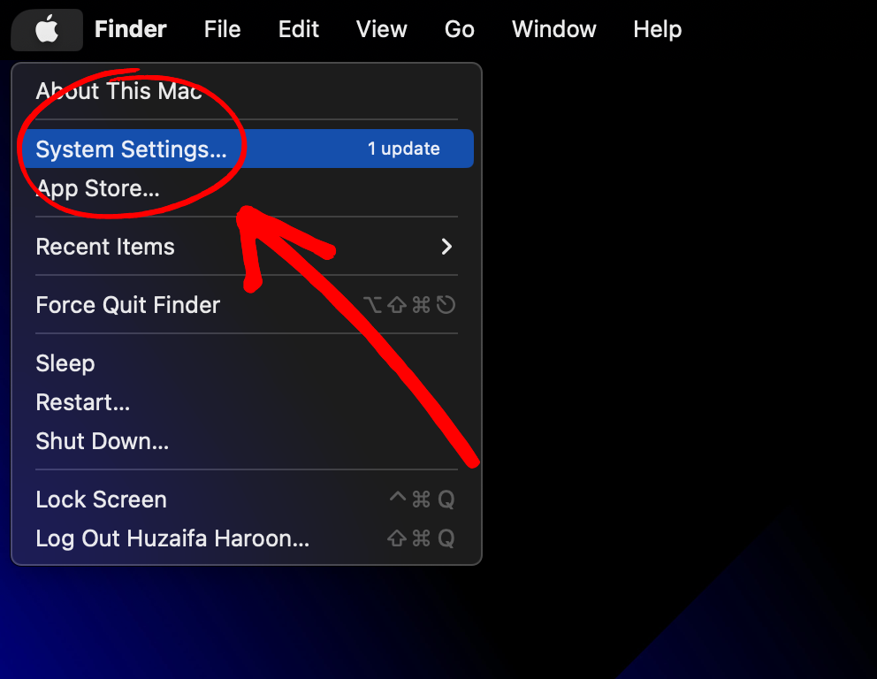 When you begin the process of resetting your MacBook Air, the first thing you have to do is click on the Apple logo in the top left corner, which opens a drop-down menu. Then click on System Settings.