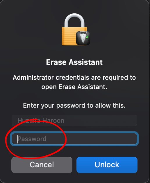 A pop-up box will appear asking you to enter the local administrator password. This is done to ensure that no-one else besides you can make irreversible changes to your MacBook.