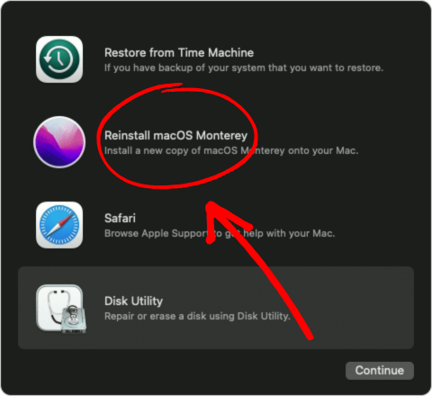Once this process is finished, close Disk Utility to return to the utilities window. Here, choose the second option in the list that says Reinstall MacOS. Follow the on-screen instructions to complete the process.