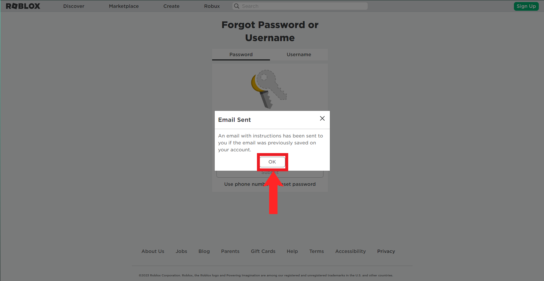 - Go to the Roblox login page, click on "Forgot Password or Username?", and enter your email address or use your phone number.