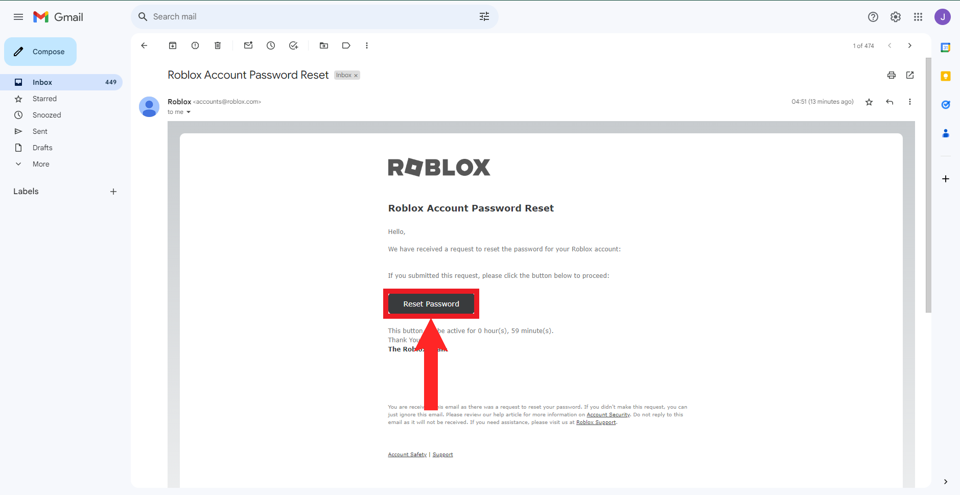 Step 5: View the email sent by Roblox