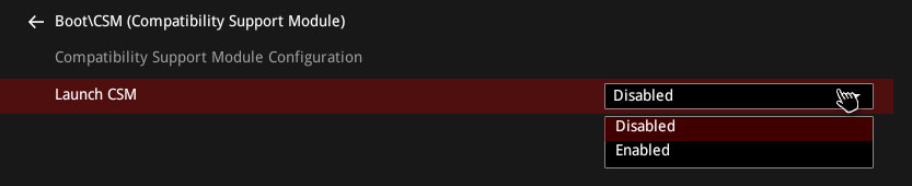 - First of all, you need to turn off CSM (Compatibility Support Module) and make sure it’s disabled. For this, go to the Boot menu and look for the CSM/Compatibility Support Module Set CSM to Disabled.