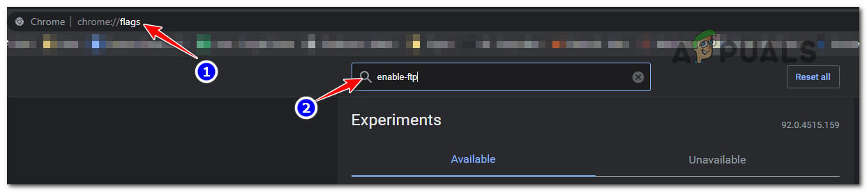 - Once you’re inside the Flags area, type ‘enable-ftp‘ inside the search bar (search flags).