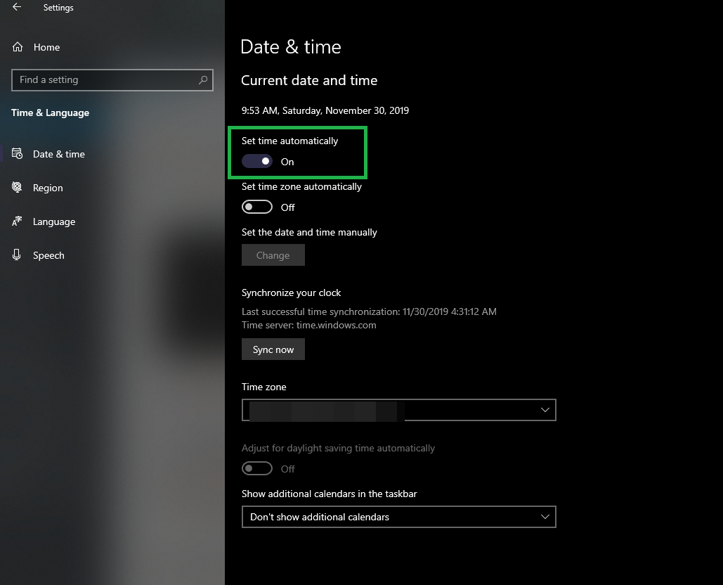 - If the patch loop continues, navigate back to the “Time & Language” settings and click on the “Set Time Automatically” toggle to turn it off.