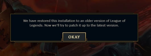 What Causes the “We have restored this installation to an older version of League of Legends” Error on League of Legends?