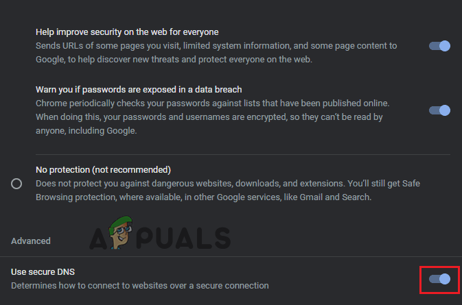 - Here search for the setting with the following description – Use Secure DNS to specify how to look up the network address for websites.