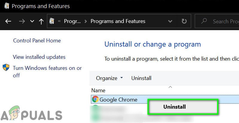 - Locate Google Chrome and right-click on it and choose Uninstall