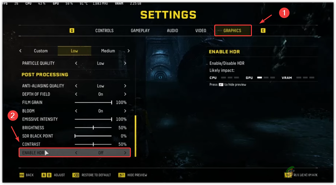 High graphics settings might overload the GPU, causing crashes. To adjust settings:
