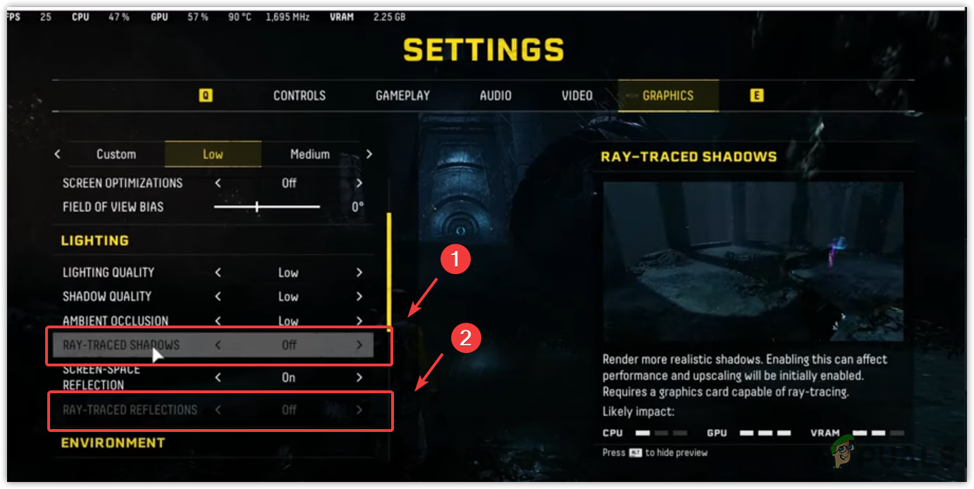 - Turn off Ray-Traced Shadows and Ray-Traced Reflections.