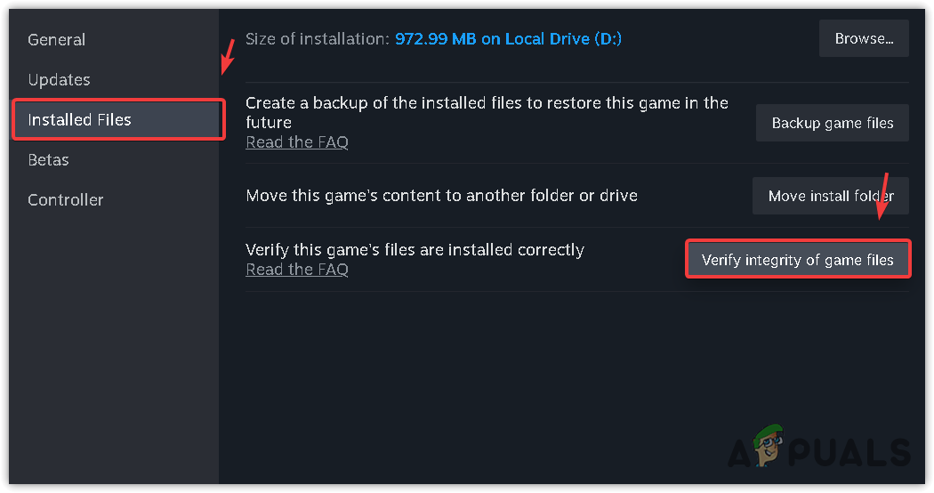 - Select Installed files and click Verify the integrity of game files.