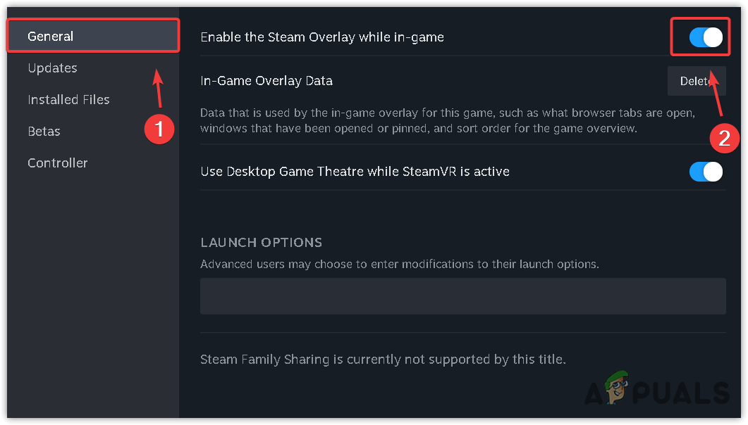 - Under the General tab, uncheck Enable the Steam Overlay while in-game.
