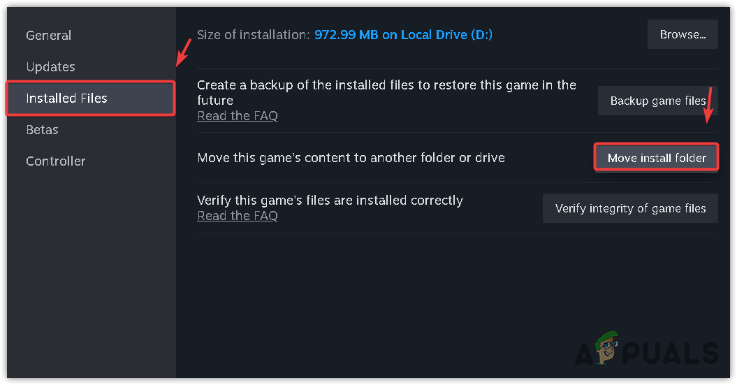 - Go to Installed Files and click Move Install Folder. Select an SSD drive.