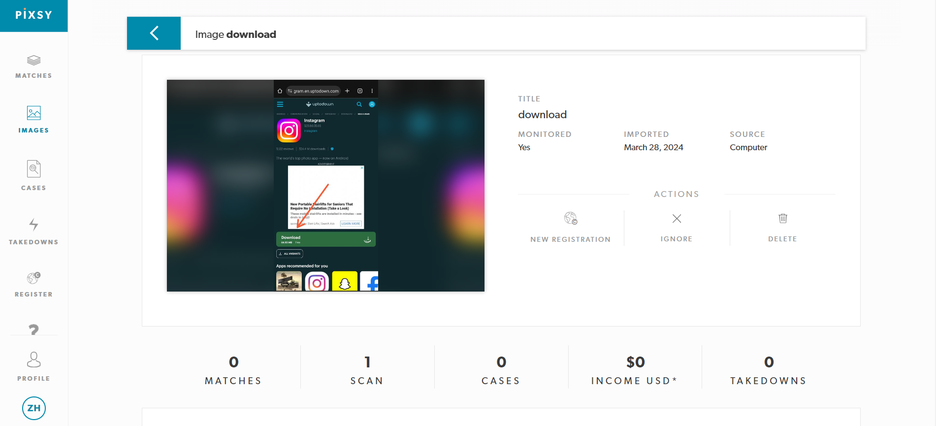 - Pixsy generates a detailed report showing where your image appears online and how frequently it has been used, making it easier to address unauthorized usage.