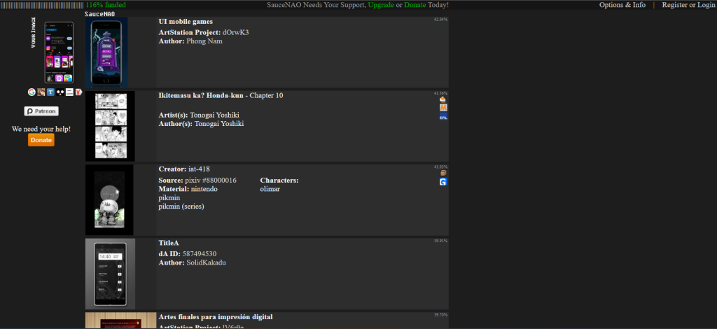 SauceNao is another excellent reverse image search tool. If Google Lens or Pixsy do not help, SauceNao offers a robust alternative with additional features. Notably, you can reverse search by uploading an image or entering its URL, making it highly flexible and convenient.