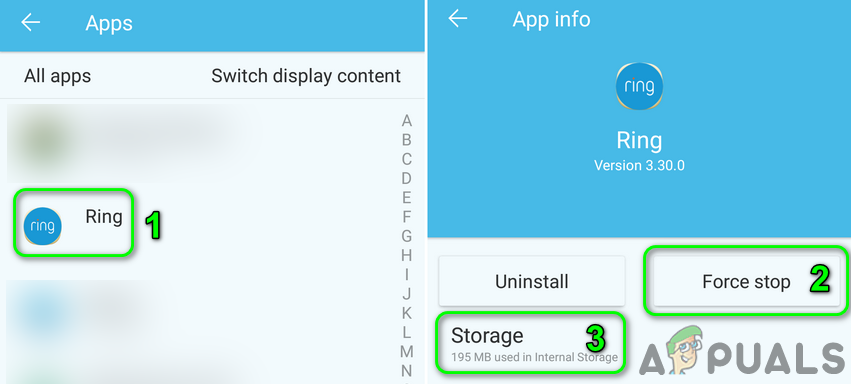 Open Apps in the Settings of Your Phone - Now select Ring and then tap on Force Stop.