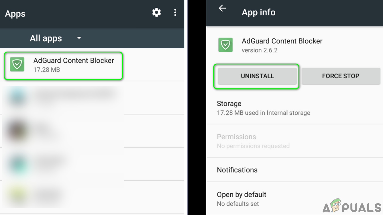 - Now tap on the problematic application (like Adguard) and then tap on the Uninstall button.