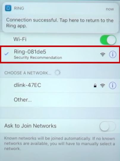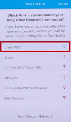 1. Connect to Ring Setup Access Point: While the initial setup, your Ring video doorbell will broadcast a WiFI network for a temporary period which you need to connect to on your mobile device. Make sure you do this as this is an important part of the setup process and will help you connect the Ring device to your WiFi afterward
