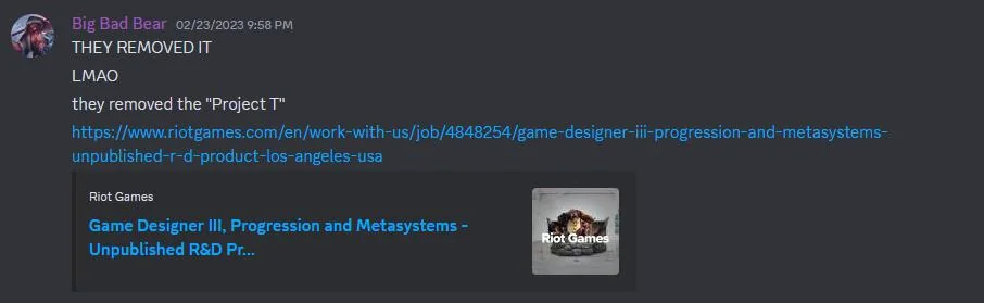 Speculations were confirmed when a job posting that first stated “Project T” was later withdrawn. Two people who were involved in the initiative were also confirmed in the tweet. Even while this job advertisement wasn’t the first to mention Project T, it is the only one that remains after Riot took down all the others.