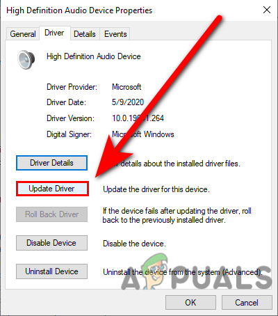 Select properties option - Go to the Driver tab on the top, and select the Update Driver option.