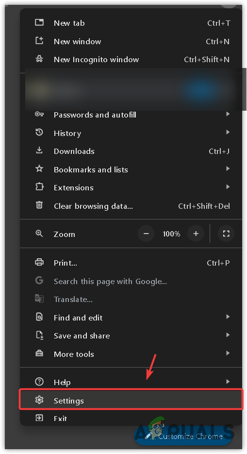 - Open your browser’s Settings by clicking the three vertical dots at the top right.
