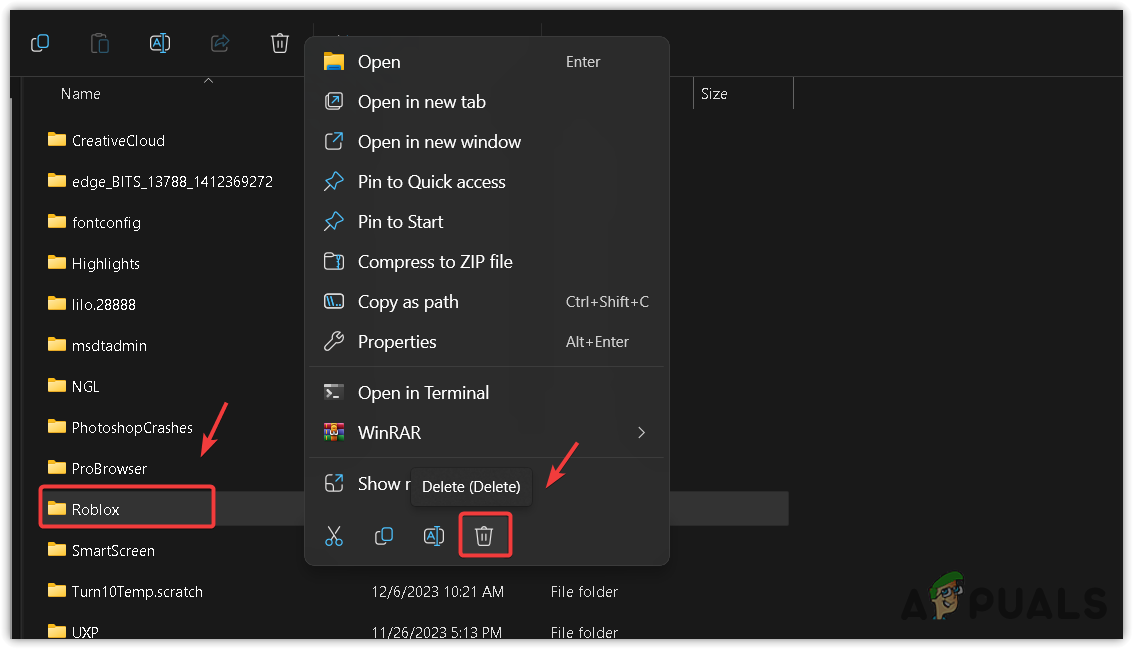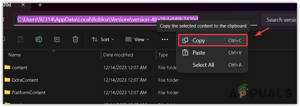- Paste the file path in the address bar to access the Roblox folder directly.