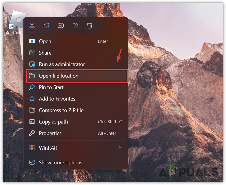 - Right-click on the Roblox desktop shortcut, then choose Open file location.