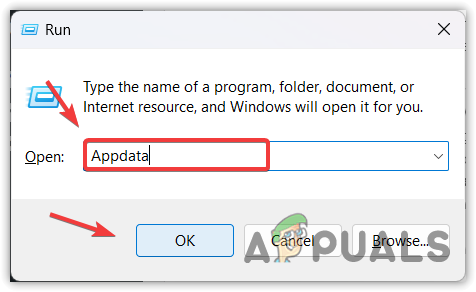 - Type %appdata% and press Enter to open the AppData folder.