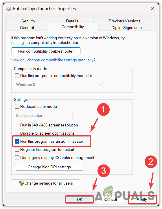 - Head to the Compatibility tab and select Run this program as an administrator.