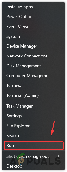 - Right-click the Start Menu and select the Run command.