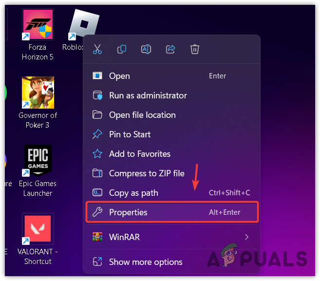 - Right-click the Roblox shortcut and select Open file location. Here, you will see the Roblox shortcut. Right-click on it and select Properties.