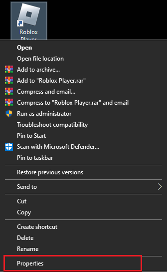 - Right-click the Roblox desktop shortcut and choose Properties.