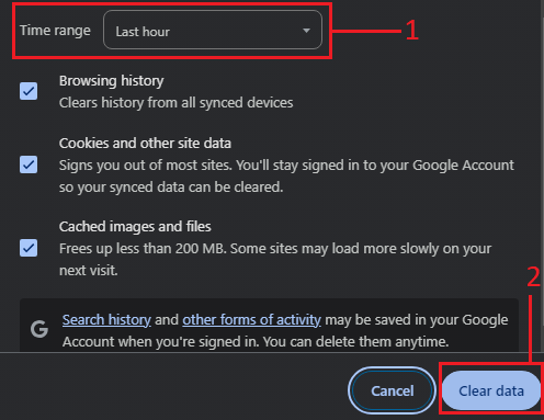 - Select the appropriate time range, make sure the necessary boxes are ticked, and hit the Clear Data button.