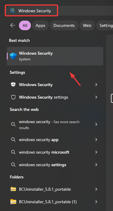 - Click the Start Menu and type Windows Security.