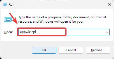 - Type appwiz.cpl to open Programs and Features.