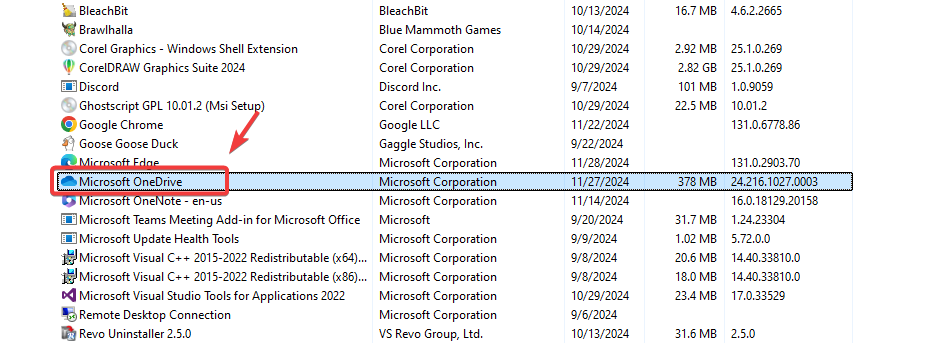 - Double-click on OneDrive to uninstall it.