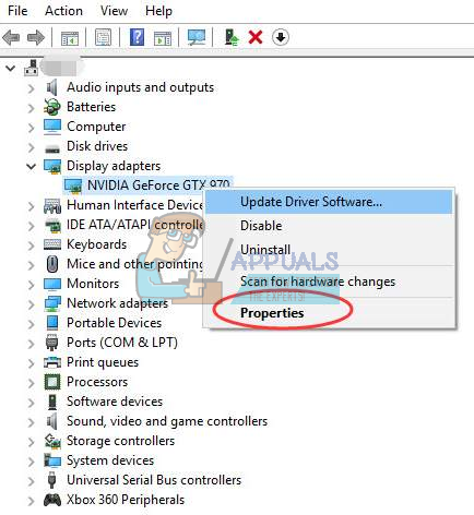- In the Device Manager, expand the Display adapters, right-click on your NVIDIA Adapter under this category and click Properties and then click the Driver tab.