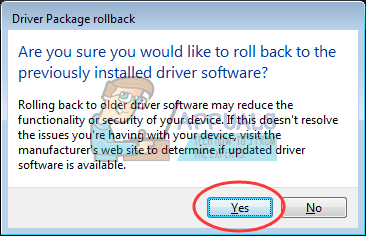 - If the confirmation dialog comes up, click Yes to confirm the rollback. After this process is done, restart your computer to fully effect the changes.