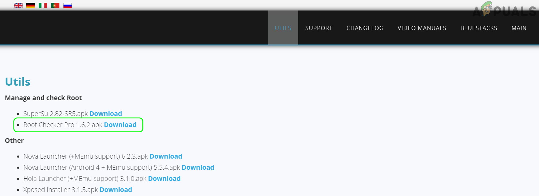 - Then, in the top bar, click on Utils, and under Manage and Check Root section, in front of Root Checker Pro, click on Download.