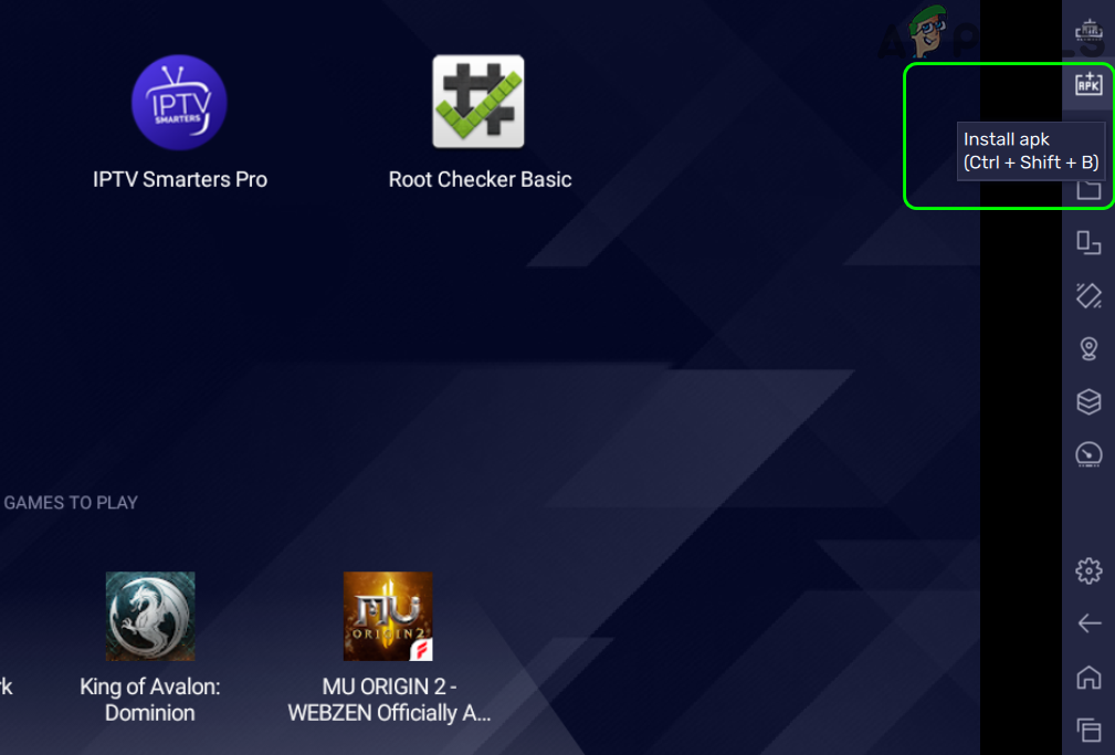 - Then click on the Install APK button in the right bar. You may also use try the shortcut key combination of Ctrl + Shift + B.