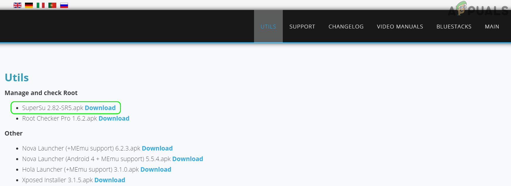- Then, on the Tweaker website, head to the Utils tab and download the latest SuperSu APK file.