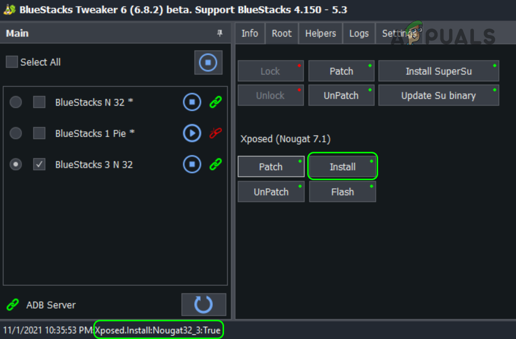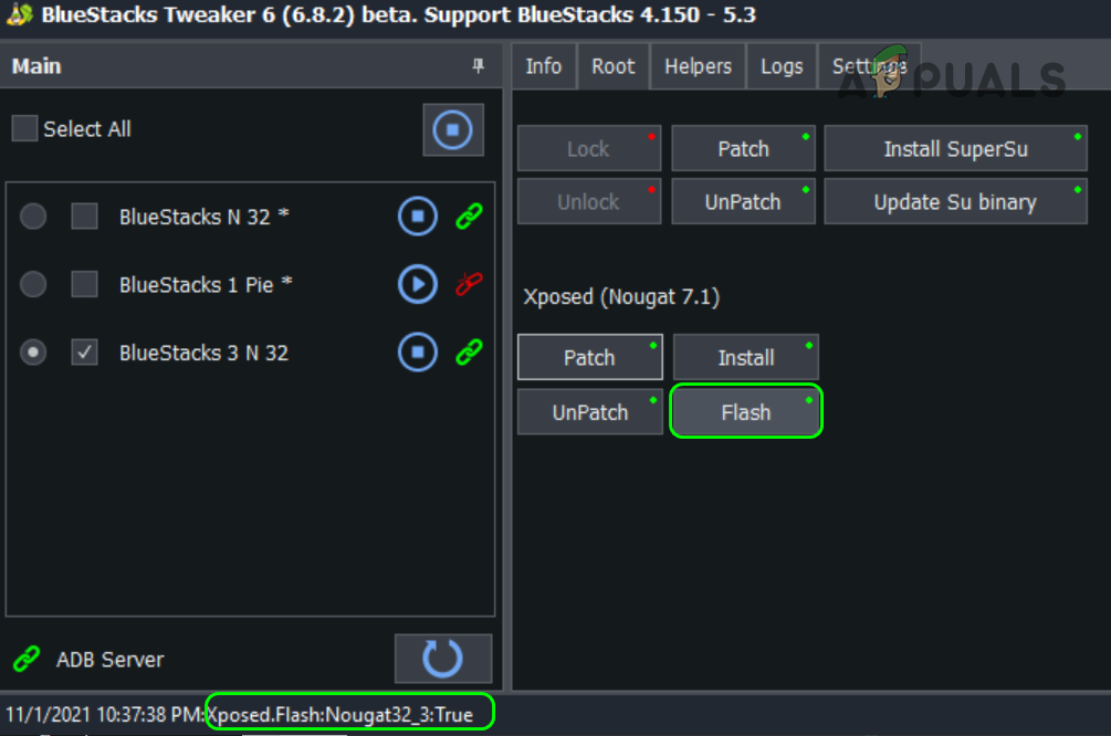 Install Xposed in BlueStacks - Then click on Flash and wait till the Xposed flash True message is shown.